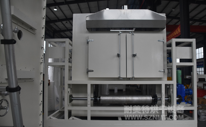 4、烘干部分總長 50000m,分1段,進出料端2500mm,中間9段每長5000mm,爐體前后裝有急停開關。